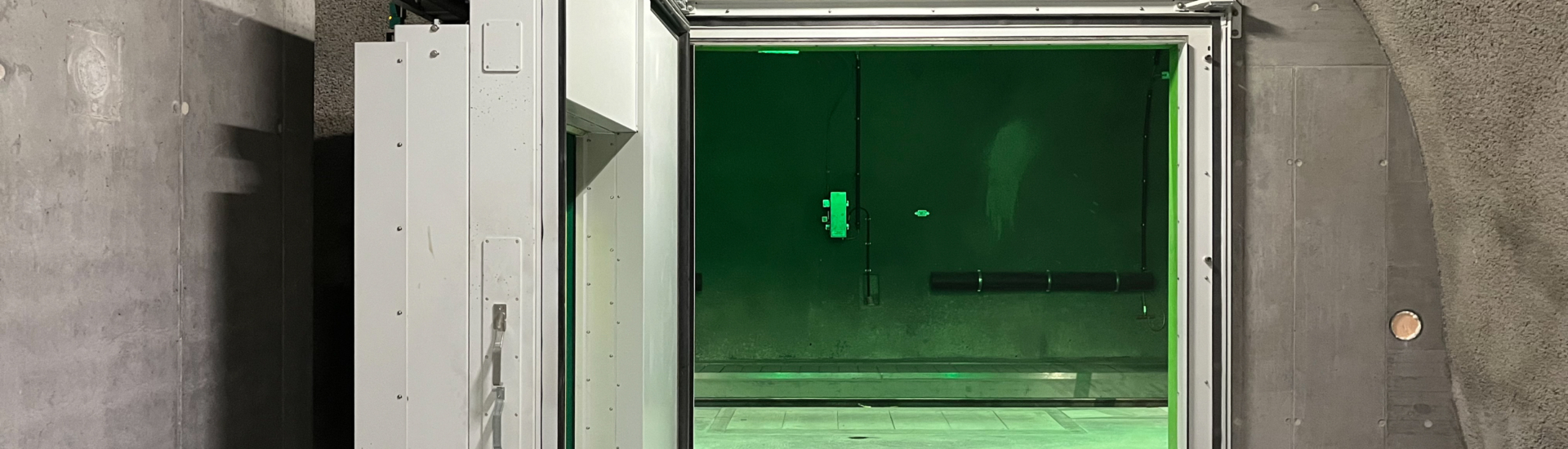 Das Hodapp Drehtor mit integrierter Fluchtschiebetür bietet eine doppelte Sicherheitsfunktion: Im Normalbetrieb gewährleistet es den Schutz der Tunnelabschnitte, während die Fluchtschiebetür in Notfällen eine schnelle Evakuierung ermöglicht.
