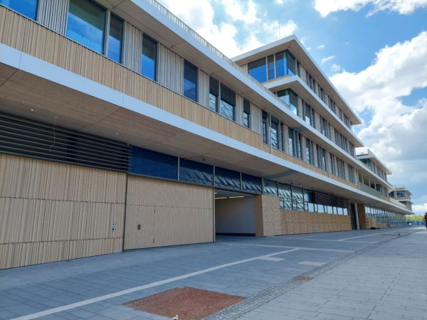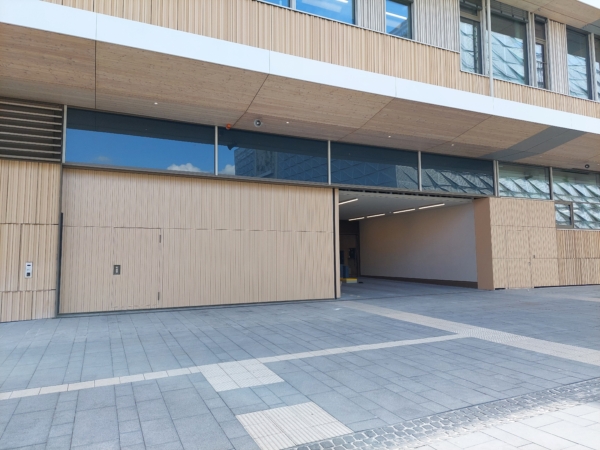 Die bauseitige Beplankung wurde optisch harmonisch auf die bestehende Fassadengestaltung der Schule abgestimmt, sodass sich das Tor perfekt in die Umgebung einfügt. So verbindet sich ästhetische Architektur mit höchster technischer Qualität und Sicherheit.