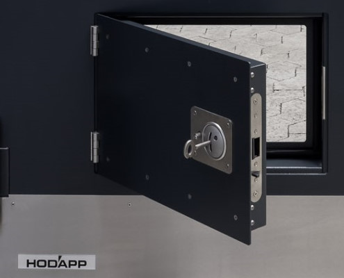 Die doppelwandige, extrem verwindungssteife Stahlblechtür bietet optimalen Schutz gegen Vandalismus und Ausbruchsversuche. Mit innovativen Sicherheitsmerkmalen wie Schnellverschluss, Kostklappe und Hochsicherheitsschloss gewährleisten sie dauerhafte Sicherheit.